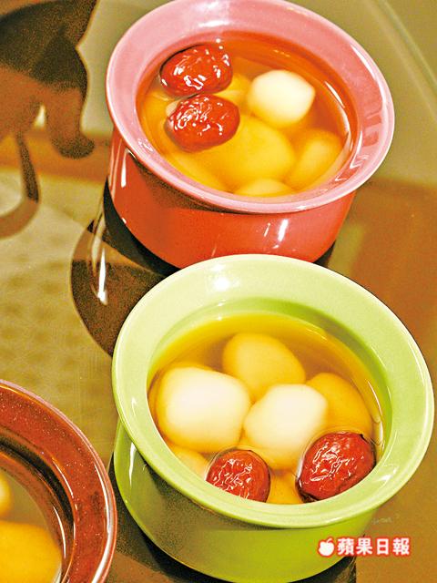 4.倒茶湯入鍋中,加冰糖及紅棗,煮至冰糖溶解,放入丸子略煮即成。