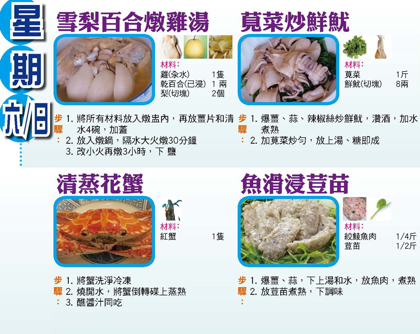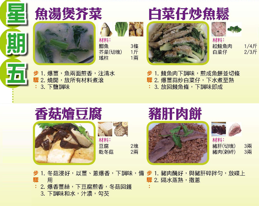 本週每日三餸一湯食譜推介: