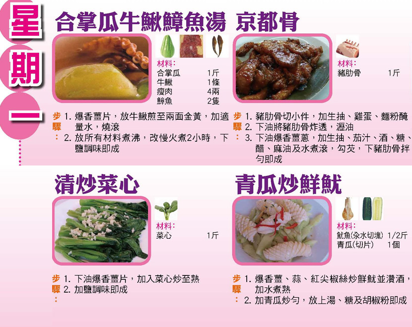 按此可閱覽英文、菲律賓文及印尼文食譜