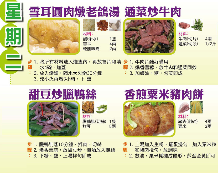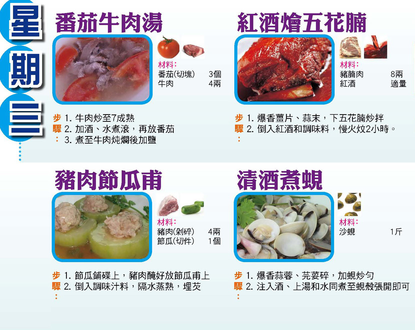 本週每日三餸一湯食譜推介: