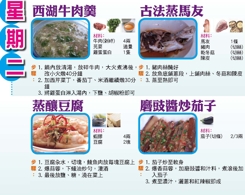 本週每日三餸一湯食譜推介: