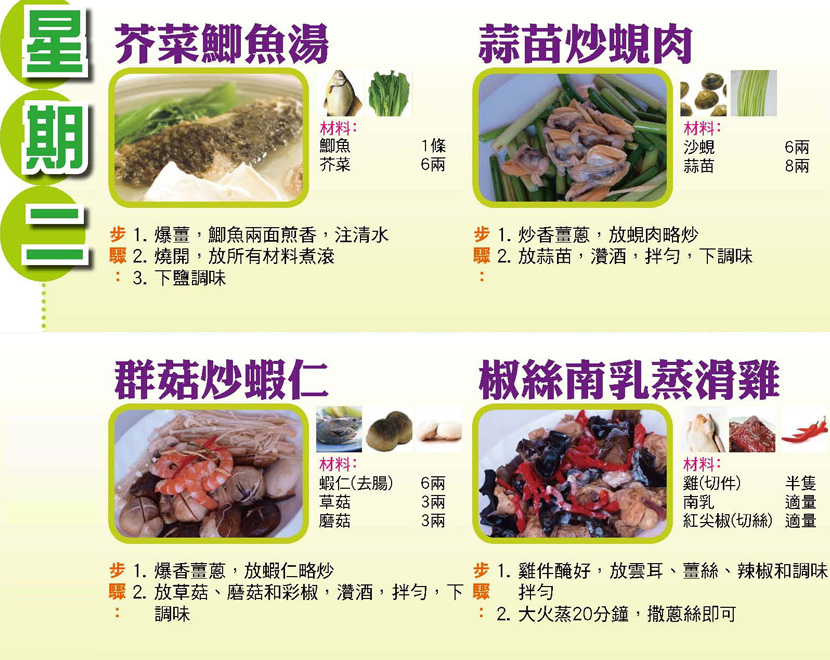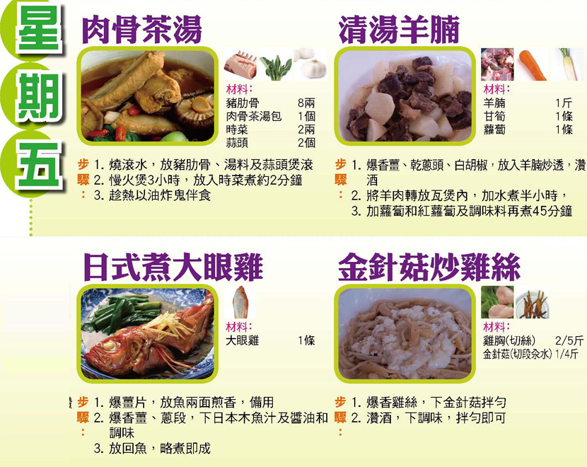 本週每日三餸一湯食譜推介: