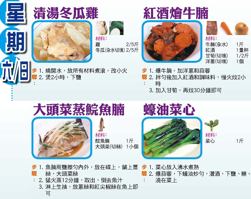 本週每日三餸一湯食譜推介: