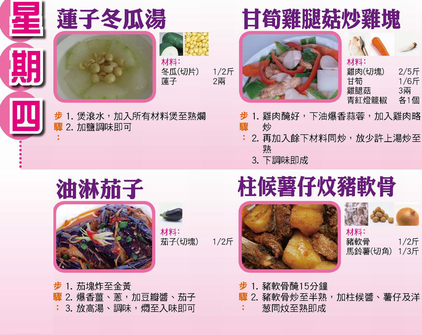 按此可閱覽英文、菲律賓文及印尼文食譜