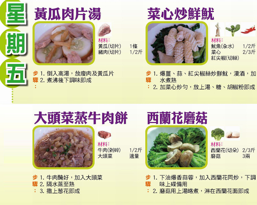 食物環境衛生署誠意向公眾推介''今日買乜餸'',好讓各位從此無需傷腦筋,輕輕鬆鬆煮好每一天!為照顧各人士的需要,食譜附有中文、英文、菲律賓文及印尼文供參閱。