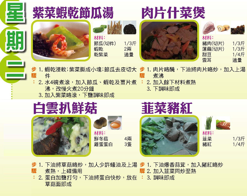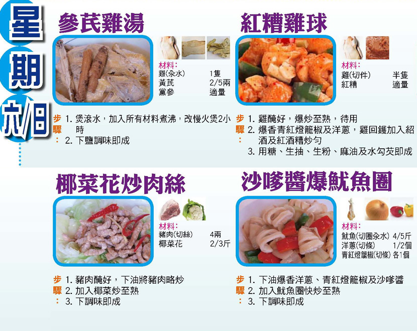本週每日三餸一湯食譜推介: