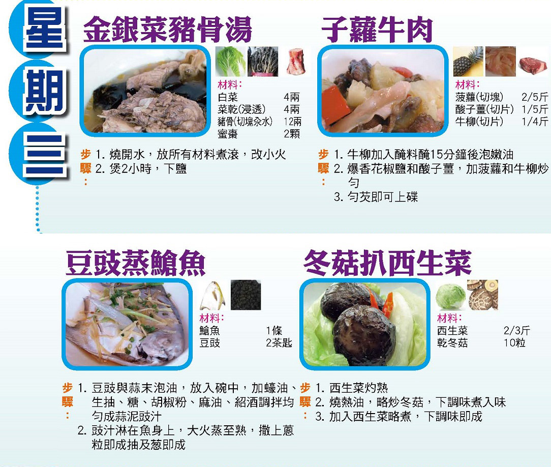 食物環境衛生署誠意向公眾推介''今日買乜餸'',好讓各位從此無需傷腦筋,輕輕鬆鬆煮好每一天!為照顧各人士的需要,食譜附有中文、英文、菲律賓文及印尼文供參閱。