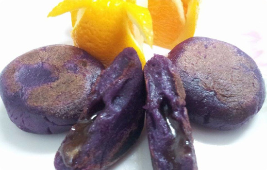 先將紫蕃薯放入鑊內蒸熟,親熱去皮搓爛