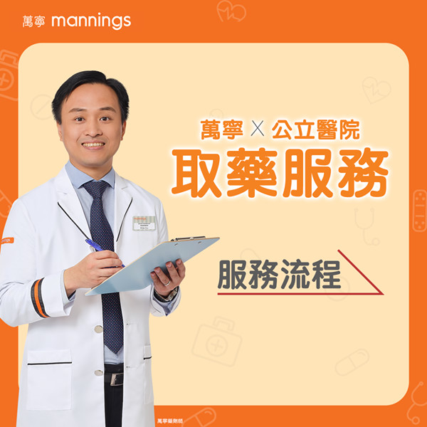 - 客人獲確認後,到指定萬寧並向專業註冊藥劑師提供醫院覆診紙。如手持覆配處方之客人,則可以直接將處方交給萬寧專業註冊藥劑師,無須向專科門診確認