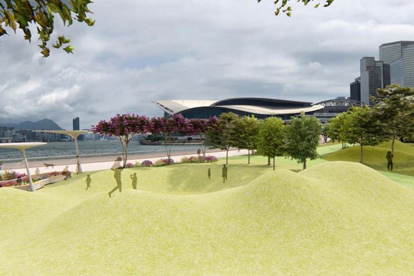 樂園動工: 添馬至會展的海濱長廊已開通,旁邊工地正在興建「童樂園」。
