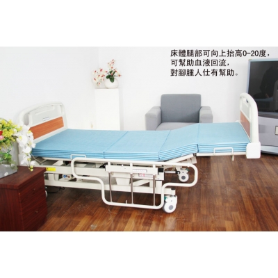 - 床體腿部還可向上抬高0-20度,同時小腿處保持水平狀態,既舒適又可幫助血液回流,促進血液的良好循環。